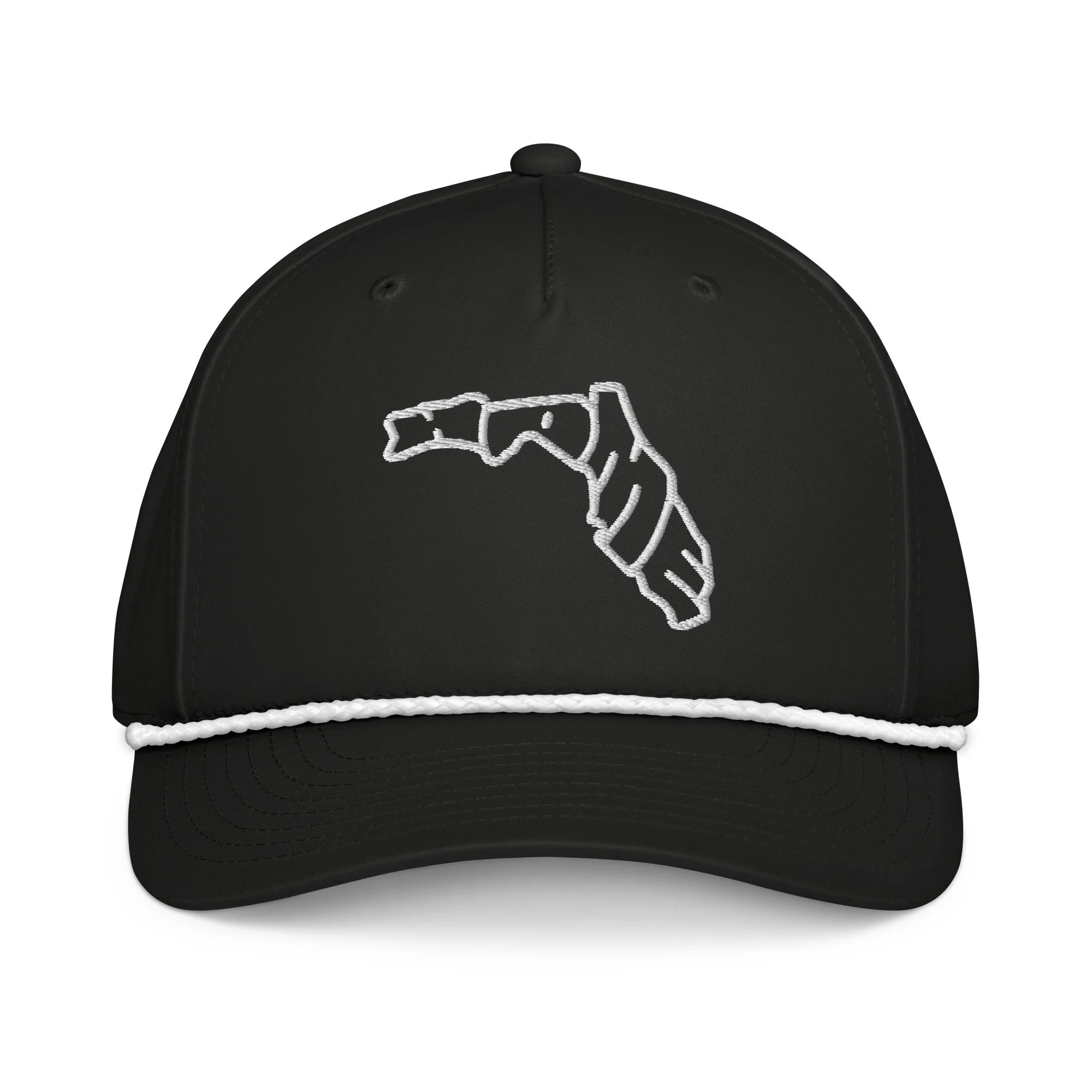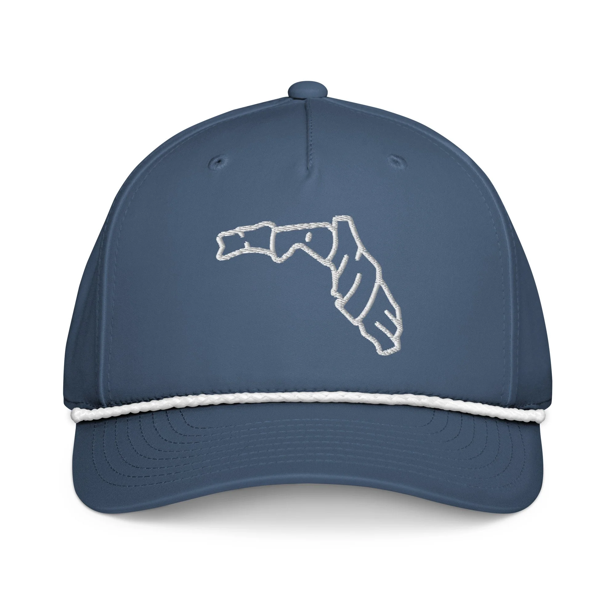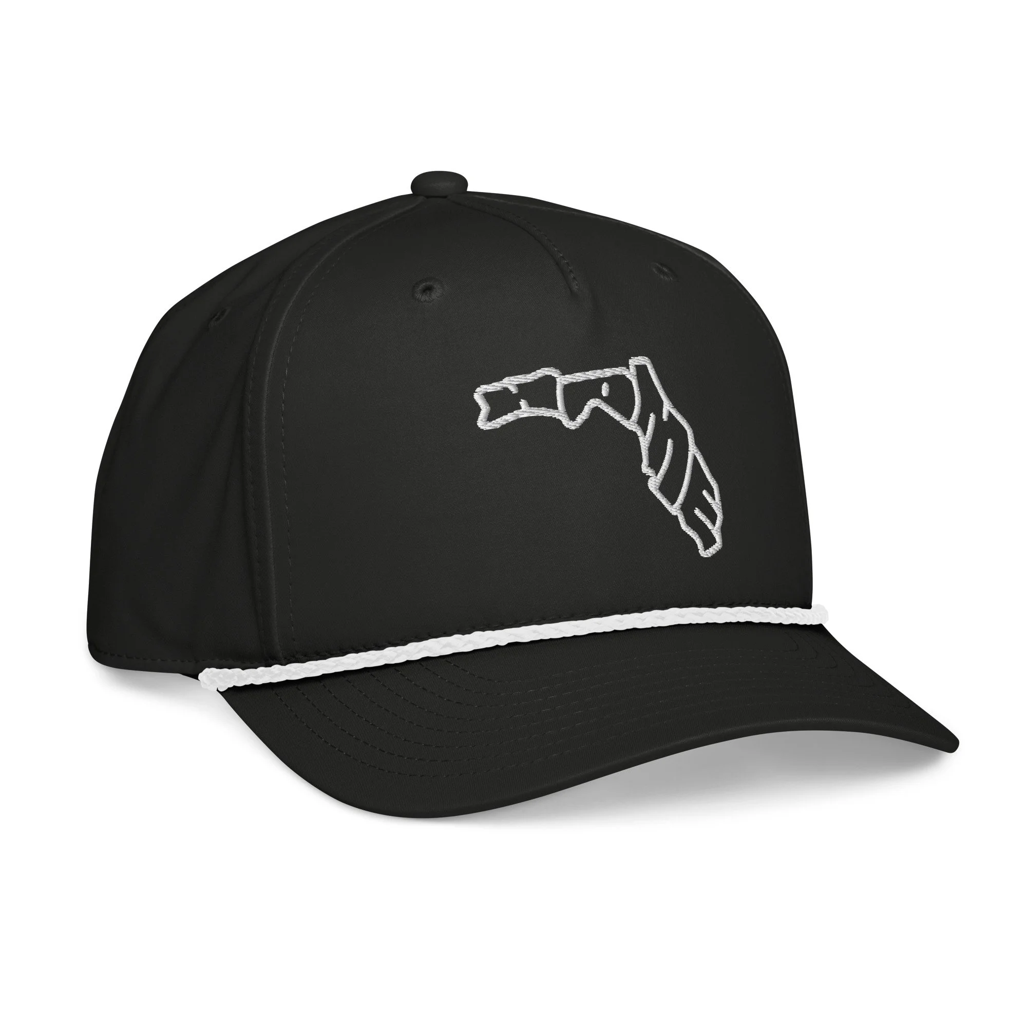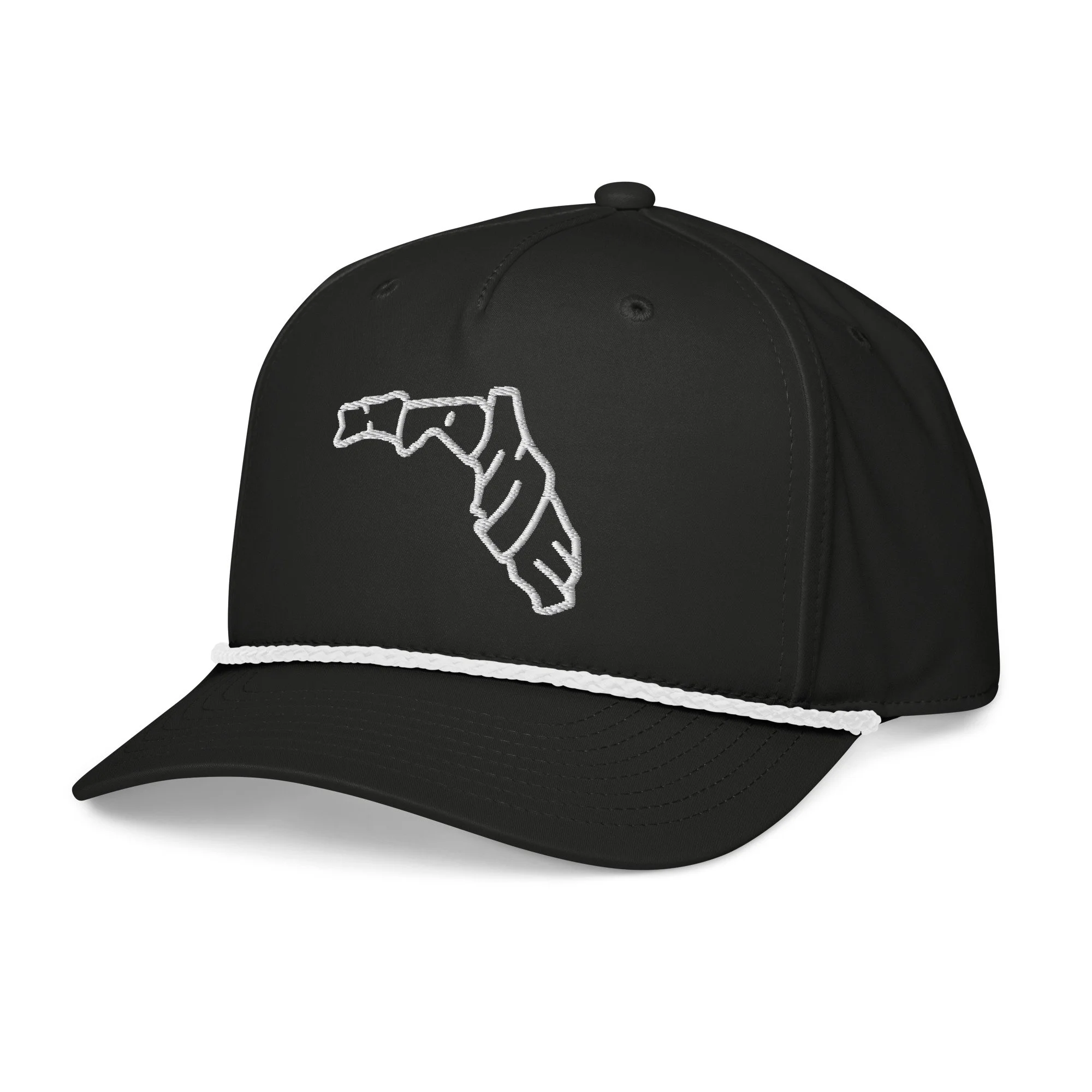 Represent The Sunshine State with this custom-designed and 3d puff embroidered Richardson golf-style hat featuring a structured fit, rope detail, and adjustable snapback closure.
